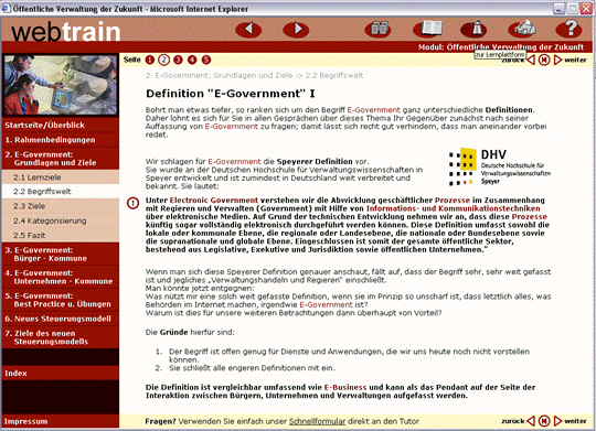 Here you see an example for an eLearning module created with Macromedia Dreamweaver: