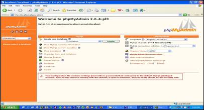 Click on phpMyAdmin (see fig. 1.1.) and a new window will be open (see fig. 1.2.) (otherwise, you can go directly to the URL: http://localhost/phpmyadmin/)